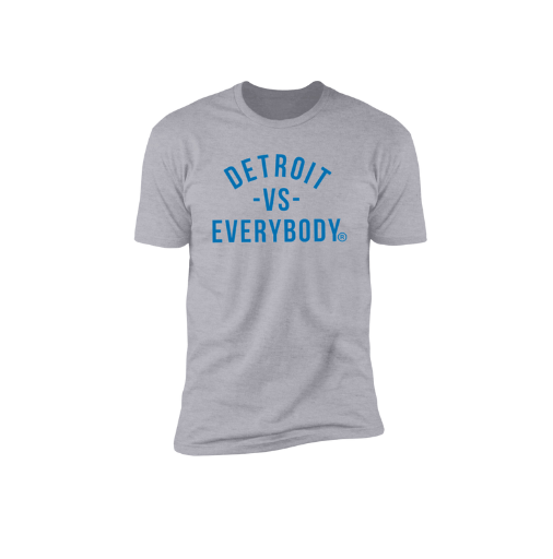 This authentic DETROIT VS EVERYBODY® t-shirt comes in Honolulu Blue & Silver. Include it in your Detroit Flava Pack order, or purchase separately for yourself or as a gift.